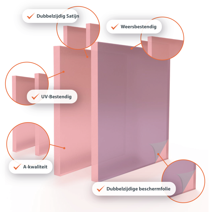 Acrylaat (Plexiglas®) gegoten is een hoogwaardige thermoplast met uitstekende optische, mechanische en chemische eigenschappen. Veelzijdig inzetbaar voor reclame, interieurbouw en technische toepassingen.