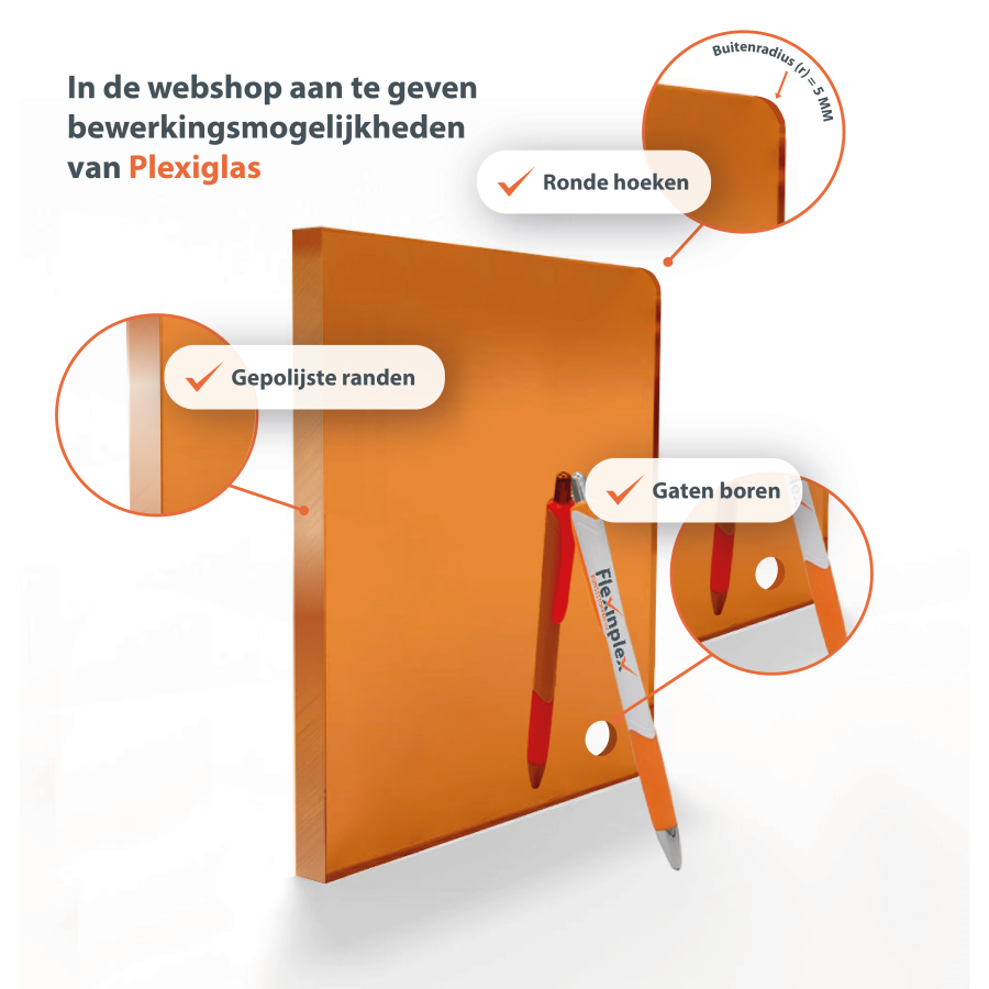 Acrylaat (Plexiglas®) spiegel is dé lichte en onbreekbare vervanger van glas. Tot wel 25 keer slagvaster en de helft lichter dan glas. Perfect voor toepassingen waar gewicht of veiligheid belangrijk is, zoals interieurs of decoratieve projecten.