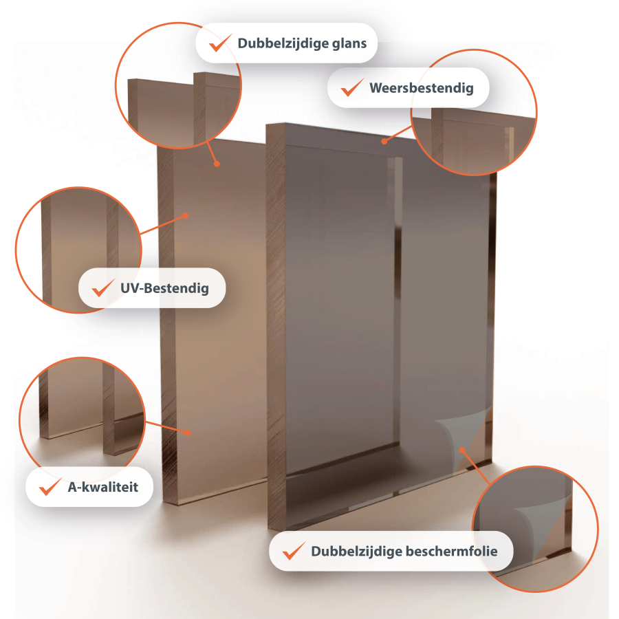 PLEXIGLAS® Plaat Transparant Licht Smoke Bruin 1021 3050x2030x3MM