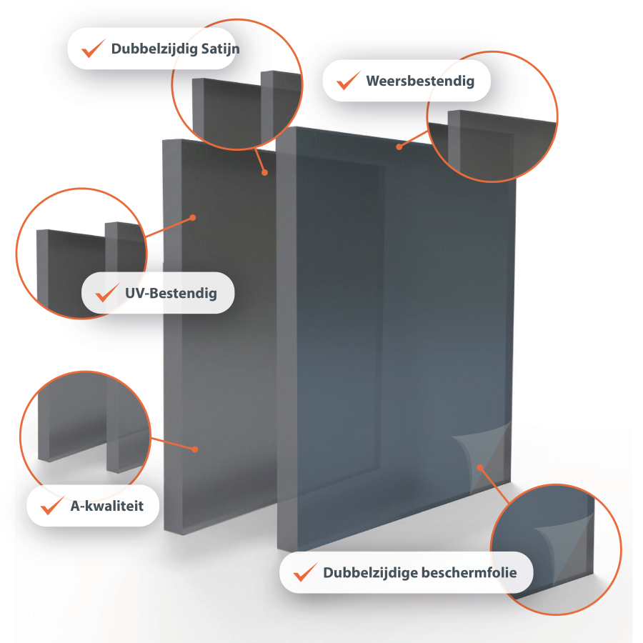 Acrylaat (Plexiglas®) gegoten is een hoogwaardige thermoplast met uitstekende optische, mechanische en chemische eigenschappen. Veelzijdig inzetbaar voor reclame, interieurbouw en technische toepassingen.