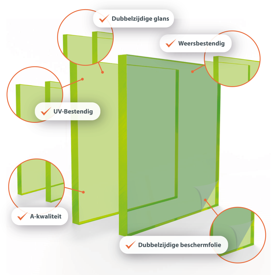 Acrylaat (Plexiglas®) gegoten is een hoogwaardige thermoplast met uitstekende optische, mechanische en chemische eigenschappen. Veelzijdig inzetbaar voor reclame, interieurbouw en technische toepassingen.