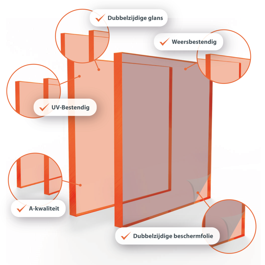 Acrylaat (Plexiglas®) gegoten is een hoogwaardige thermoplast met uitstekende optische, mechanische en chemische eigenschappen. Veelzijdig inzetbaar voor reclame, interieurbouw en technische toepassingen.